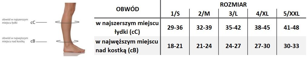 Produkt odpowiedni dla długości nogi 40-44cm, mierzonej od podłogi do 2cm pod kolanem.