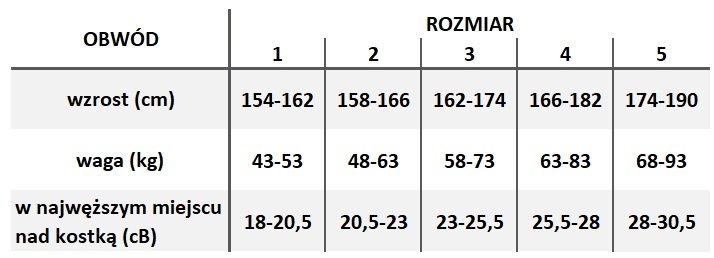 - I klasa ucisku: Ucisk w kostce 12-17 mmHg – dzianina 70 den